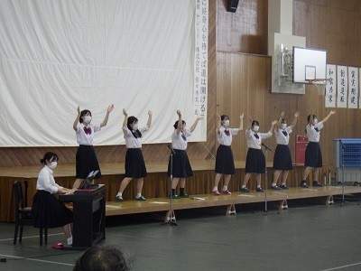 だんだん広場で開催でき、発表する生徒も会場を囲むようにして観る観客も、手拍子でとても盛り上がっていました。