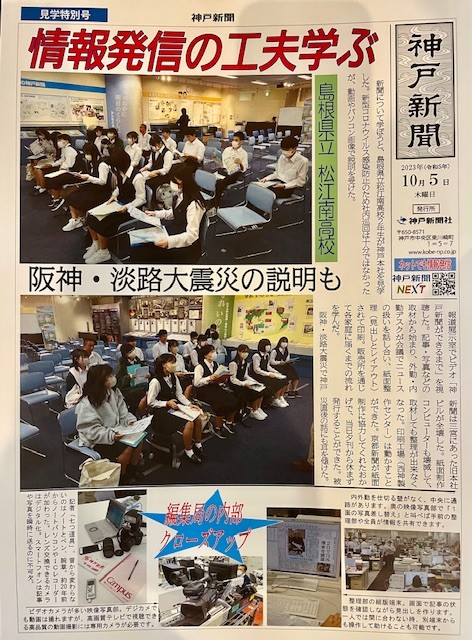 【普通科2年】関西研修2日目(その2) 学校生活 2023.10.05 企業研修の様子です。 神戸税関 神戸新聞 神戸理化学研究所生命機能科学研究センター 大阪取引所 大阪造幣局 大阪企業家ミュージアム 神戸新聞社では、見学の様子をさっそく記事にまとめ、見学特別号として発刊していただきました。 各企業の皆さま、ご対応いただきありがとうございました。 所によっては雨が降り心配されましたが、天気は徐々に回復、午後は万博記念公園に全員集結し、自由に散策してリフレッシュします。