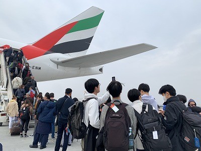 ボローニャからドバイに飛び、ドバイでトランジットを過ごしたあと、関空に向かいました。帰りは偏西風の影響か、行きよりもかなり短い時間で到着しました。関空からはバスで南高に帰り、保護者さんに迎えられて、それぞれが帰着の途につきました。