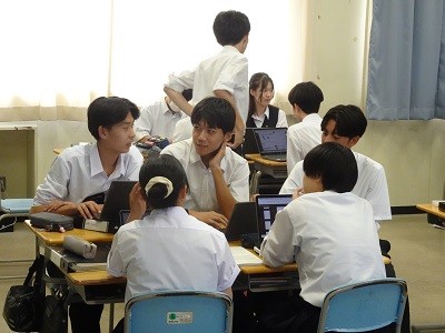【第2学年 普通科】探究活動の様子(RAP応用A) 授業 2025.09.22 データ収集・分析・活用 2学期の探究活動が本格始動しました。 どの班もしっかり協働しながら、仮説検証方法を考えていました。 2学期からは班に1名アドバイザー教員がつく「アドバイザー制度」もスタートし、放課後には班員全員で進捗状況を各担当教員に報告していました。