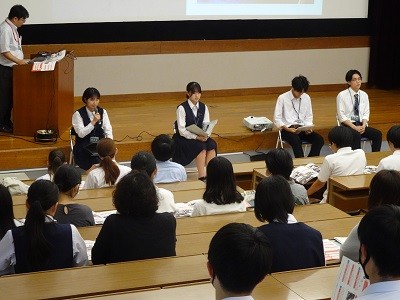 第1部は校長からの学校紹介の後、探究科学科の在校生や卒業生が体験談を語り、第2部では小グループで座談会形式で、自由に質問ができる場としました。
