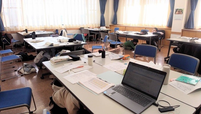 大きく揺れた際、スタッフの方の指示で、参加していた南高生は小・中学生をリードして机の下に入ったそうです。